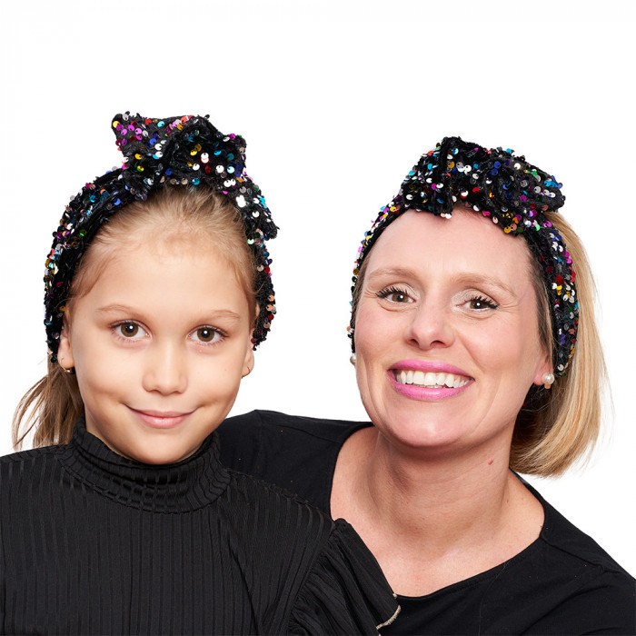 Caractéristiques du bandeau Arlequin Noir à Sequins Multicolores