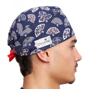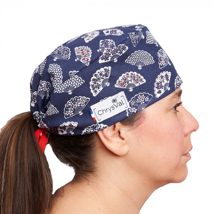 Design Attrayant : Le calot court Rosa se distingue par son motif d’éventails dans des nuances harmonieuses de rose, kaki et bleu. Ce mélange de couleurs vives apporte une touche de fraîcheur et d’élégance à votre tenue professionnelle.