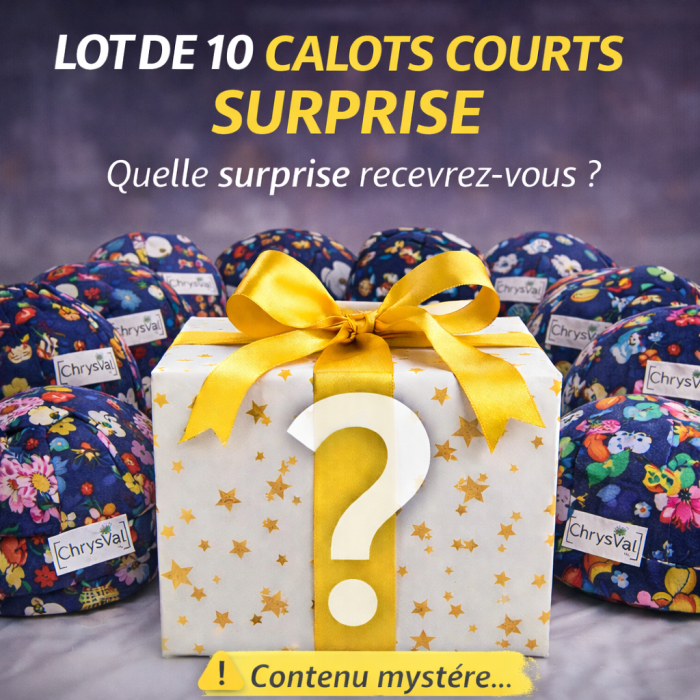 Notre lot de 10 calots courts "Surprise" à été conçu pour équiper votre structure tout en ayant un tarif préférentiel, ce lot est UNISEX.