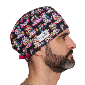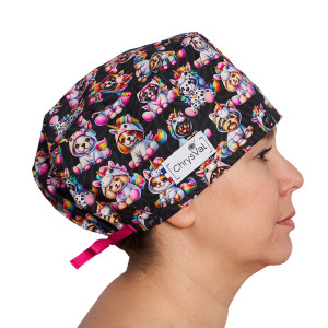 Le modèle Dogi’Corn est parfait comme calot vétérinaire, calot infirmier ou calot de cuisine. Son contraste noir et arc-en-ciel attire le regard tout en restant élégant et professionnel.
