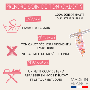Important : Les calots en soie ne sont pas des dispositifs médicaux et ne sont pas destinés à un usage en bloc opératoire ou en environnement stérile.